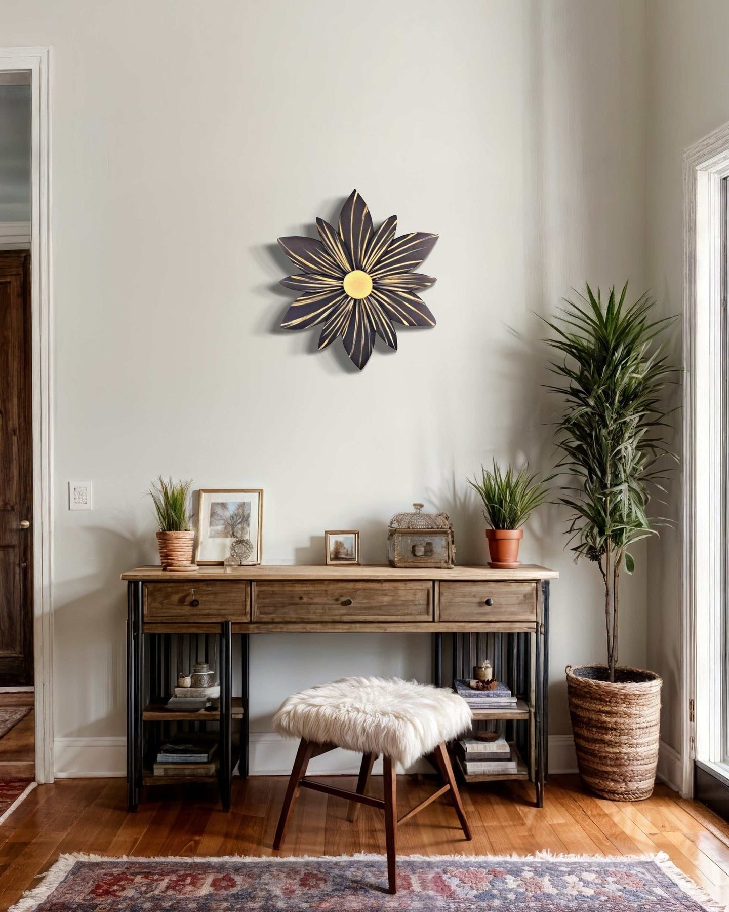 This stunning wooden flower art is a symbol of strength, mystery, and elegance. The contrast of black and gold creates a sense of security and luxury. We are amazed by the beauty of this flower! The pictures do not do justice to the exquisite Golden Onyx Wooden Flower Door Decoration, which sparkles with Pharaoh’s gold accents. This handcrafted flower is a perfect addition to any home that values style and sophistication.
