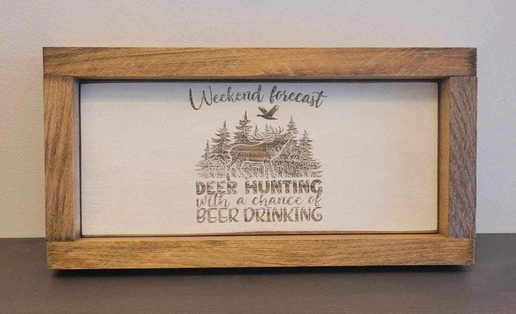 Laser engraved wood sign with hunting design; perfect for outdoor enthusiasts and rustic decor.