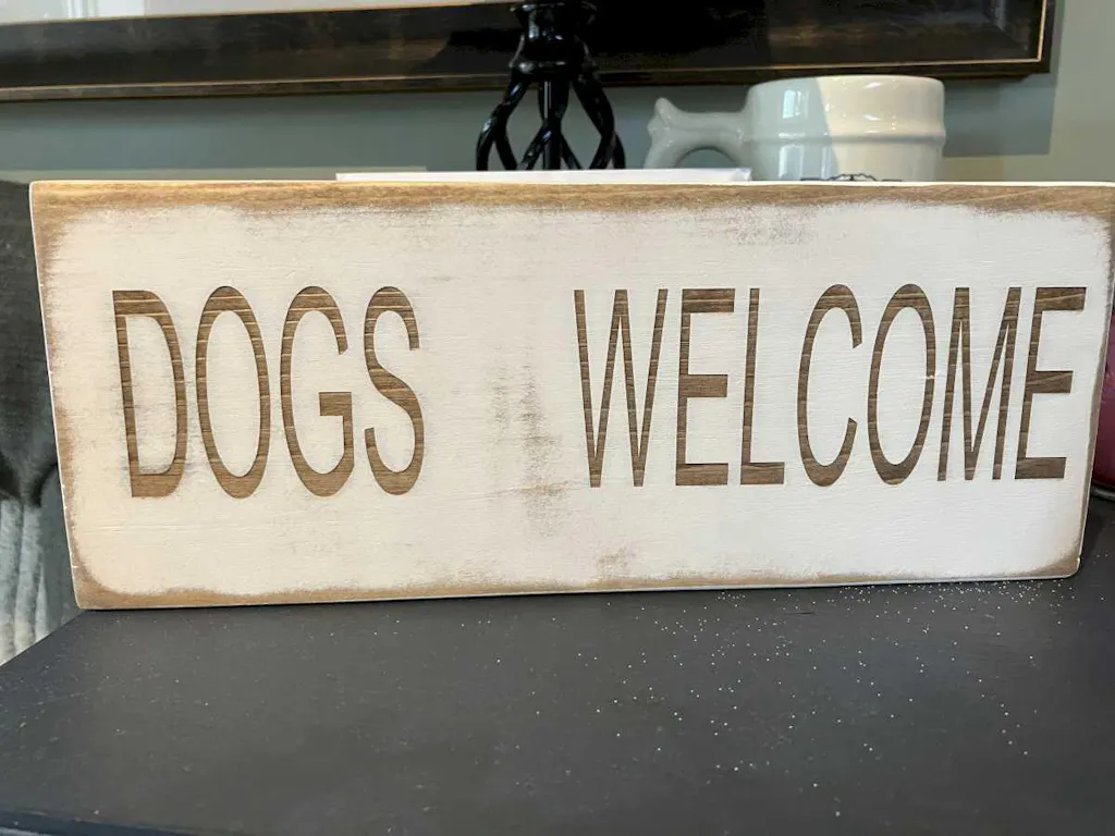 Notre panneau en bois est une jolie façon d'accueillir vos compagnons à quatre pattes chez vous. Le motif gravé au laser et peint en blanc antique apportera une touche de charme à n'importe quel espace, et l'anneau en D au dos permet de l'accrocher facilement. Avec ses dimensions de 28,5 x 11,5 cm, il est idéal pour une porte ou un mur.